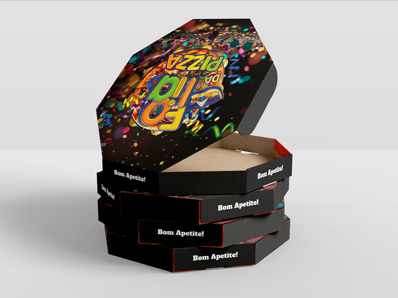 Resistência, qualidade e apresentação impecável. Nossas caixas para pizza são produzidas com material reforçado, ideais para manter o sabor e a temperatura até a entrega. Personalizamos com a identidade da sua marca.